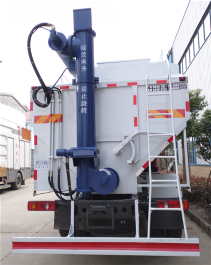 上裝罐體:罐體材質(zhì)采用4mm優(yōu)質(zhì)碳鋼板,整車3條絞龍,由3個(gè)5.5KW電機(jī)380V外接電源帶動(dòng)頂部絞龍用液壓控制舉升,可左右旋轉(zhuǎn)180°。罐體內(nèi)分為四個(gè)倉(cāng),可以獨(dú)立控制各分倉(cāng)卸料順序和速度。(備注:此報(bào)價(jià)為標(biāo)配,國(guó)產(chǎn)電機(jī),德力西電柜